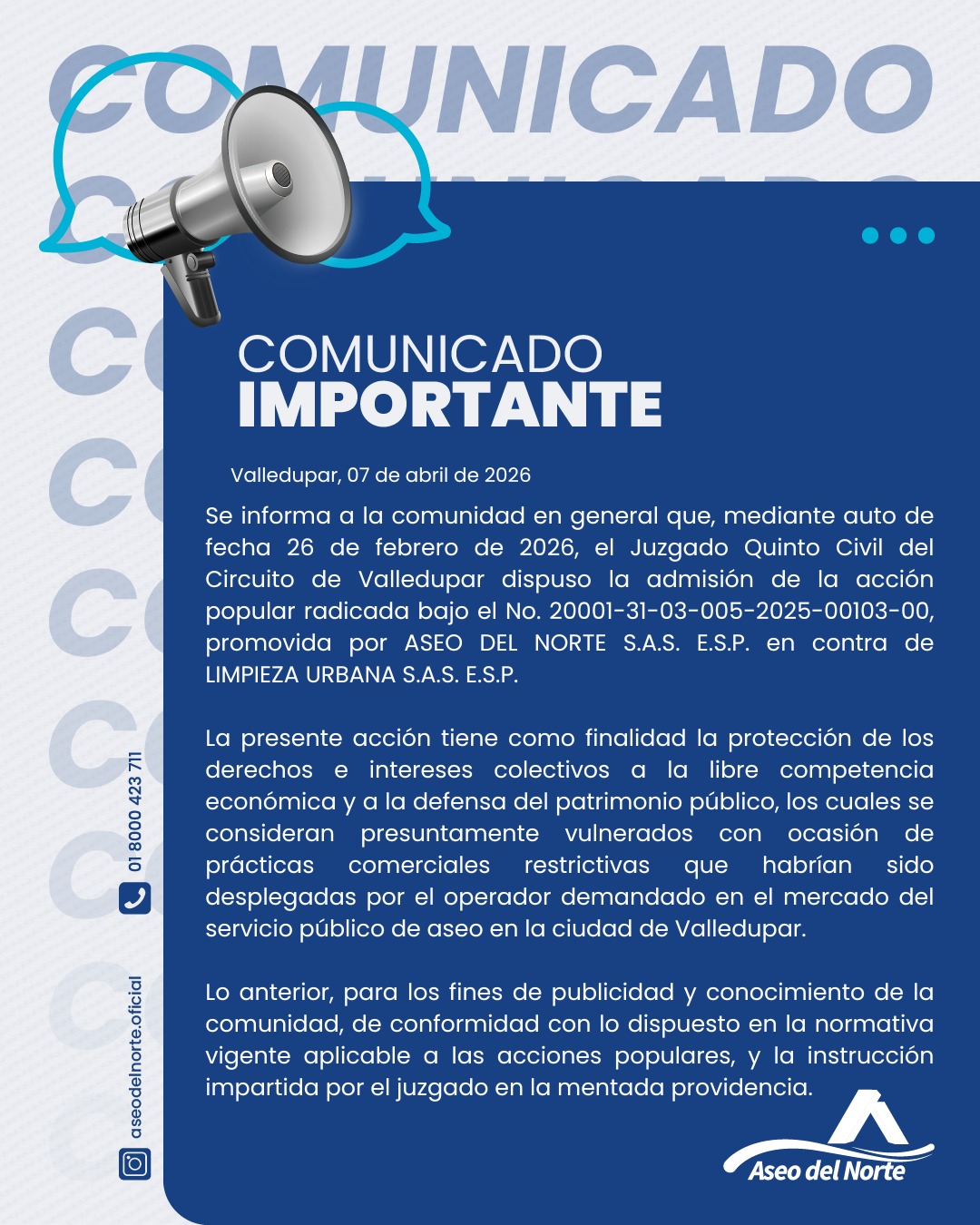 Conozca en el siguiente link el auto del Juzgado Quinto Civil del Circuito de Valledupar