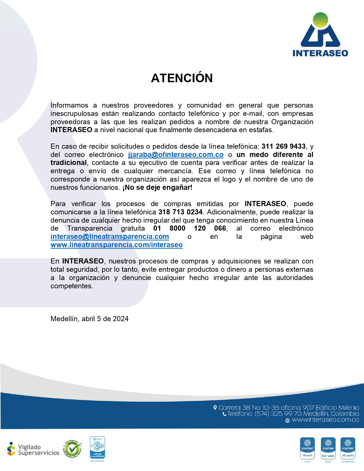Proveedores: No se dejen engañar